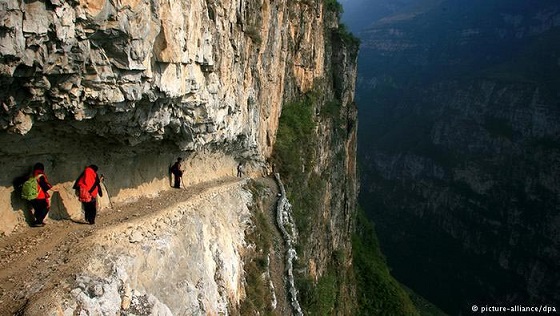 این دانشآموزان برای رسیدن به مدرسهشان که در روستای کوهستانی "گولو" در استان سیچوان واقع شده، مجبورند چندین ساعت از یک راه باریک کوهستانی بالا بروند. این راه در برخی از جاها تنها حدود ۵۰ سانتی متر عرض دارد. بچهها برای گذر از این قسمتها باید چسبیده به صخره، آهسته به سمت جلو حرکت کنند، در غیراینصورت خطر سقوط درون پرتگاه وجود دارد.